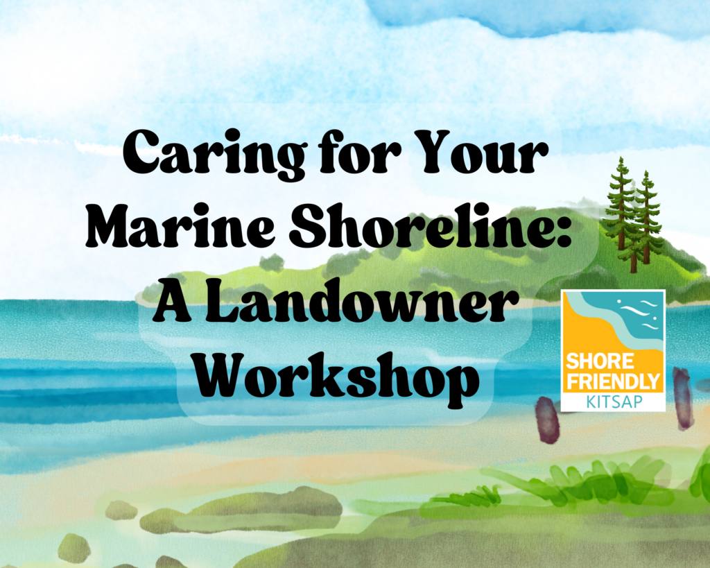 Shore Friendly Kitsap hosted its annual Shoreline Landowner Workshop and Beach Walk. Jessica Cote and Traci Sanderson from Blue Coast Engineering were our guest speakers, covering nearshore habitats, marine shore types, seasonal changes to shorelines, human modifications to shorelines, and best management practices. You can view the presentation slides here and watch the recording here.